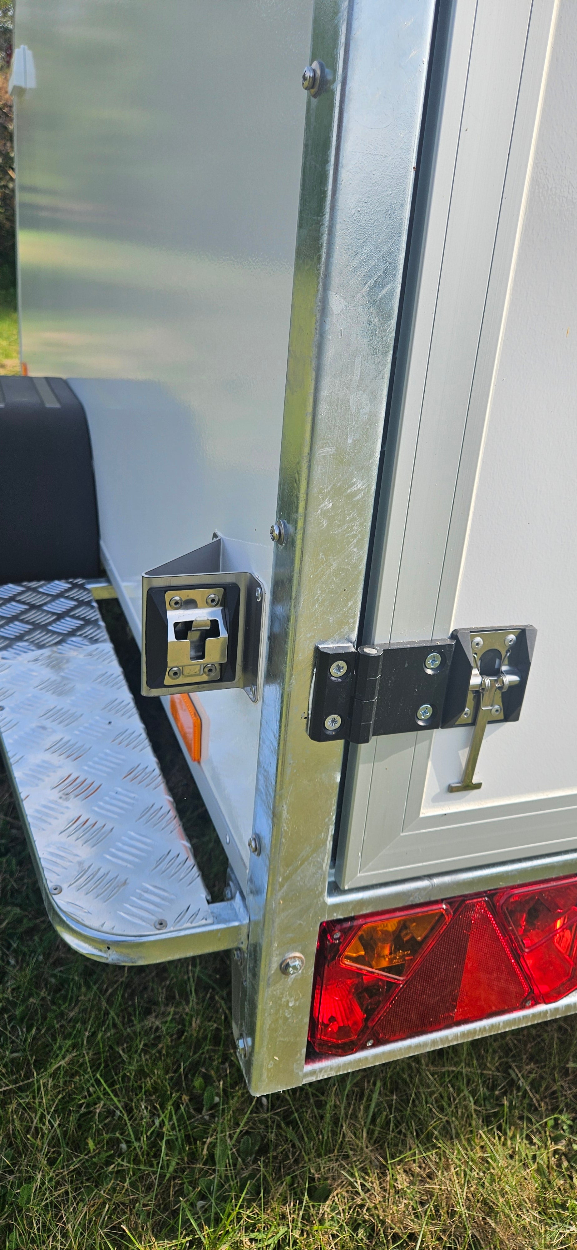 išilginės stogo sijos (relingai), atidarytų galinių bei šoninių durų fiksatoriai |